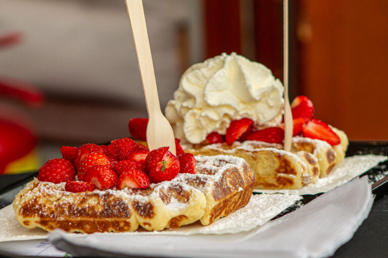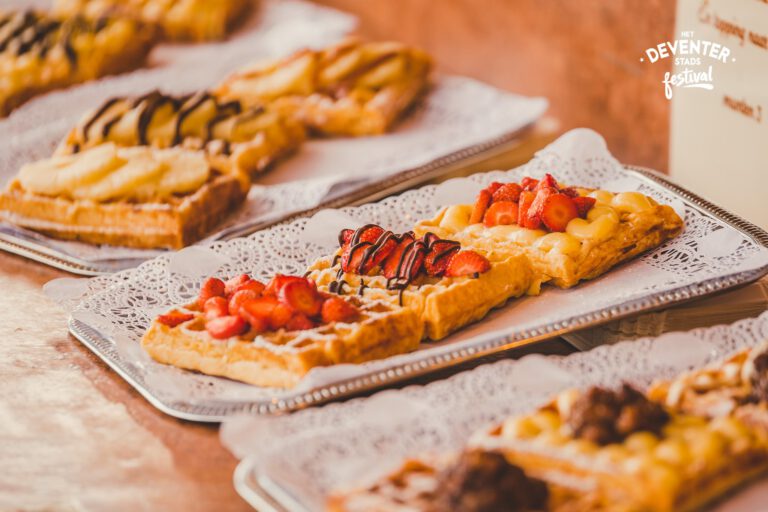 Hoewel een wafel met alleen een beetje poedersuiker natuurlijk van zichzelf al overheerlijk is, maakt ons assortiment aan toppings de wafels helemaal af. Gasten kunnen bij ons kiezen uit bijvoorbeeld echte Callebaut-chocolade, in melk, wit óf puur, banketbakkersroom, of verse Hollandse aardbeien. Een verdere absolute uitblinker in ons topping-assortiment is onze volledig huisgemaakte caramel, de ultieme topping voor iedere zoetekauw! Verder kunnen vanzelfsprekend warme kersen, banaan, boerenjongens en ananas voor de liefhebber niet ontbreken. Last but not least, de ‘final touch’ cruciaal is om iedere wafel helemaal af te maken is een grote toef échte slagroom! Onze toppings zijn grenzeloos met elkaar te combineren en wij kunnen dan ook elke wafel maken die u wil.