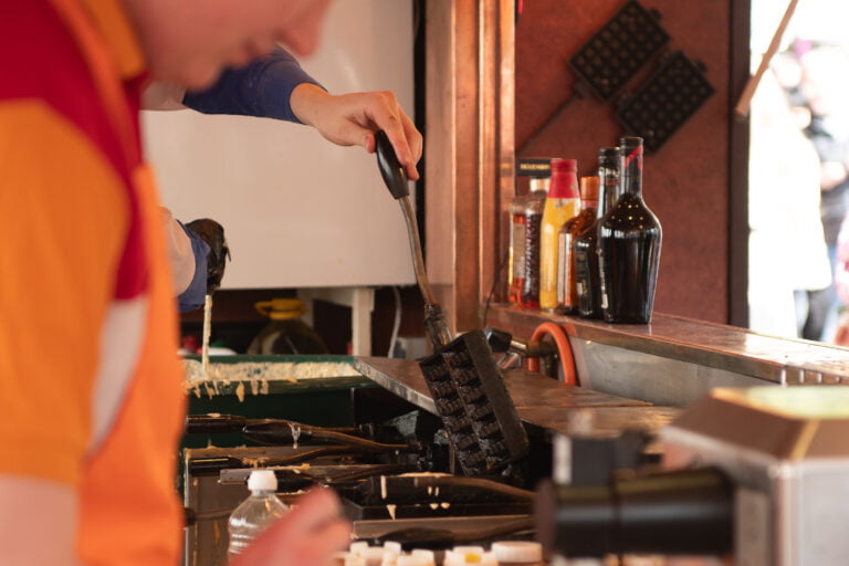 Hierom bakken onze wafels recht voor de neus van de gast. Het geheim? Ons eigen recept wat al meer dan 25 jaar onveranderd gebleven is. Hoewel het precieze recept natuurlijk top secret is kunnen we wel het hoofdingrediënt verklappen… Liefde! Ons beslag wordt namelijk ter plekke geslagen, gemaakt van ingrediënten van de hoogste kwaliteit met een duurzame afkomst. Dit betekent dat de wafels van ieder beslag nét een beetje anders zijn, maar toch allemaal even lekker. Onze wafels worden vervolgens goudbruin en krokant gebakken in echte gietijzeren wafelijzers, en afgetopt met een laag poedersuiker door onze wafelbakkers. Lekkerder kan bijna niet…